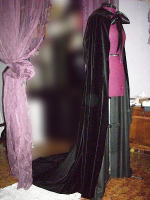 Os dejo por aqui algunas fotos de la capa que llevara Morgana, uno de los personajes de nuestra coleccion, y que ya esta acabada. Tras mucho patronar, hemos conseguido una bonita capa con cola y capucha!