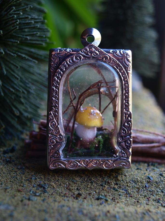 Son colgantes, para llevar en un collar, con un imperdible como broche, o como llavero. Dentro de ellos hay recreado un trocito de fantasia.