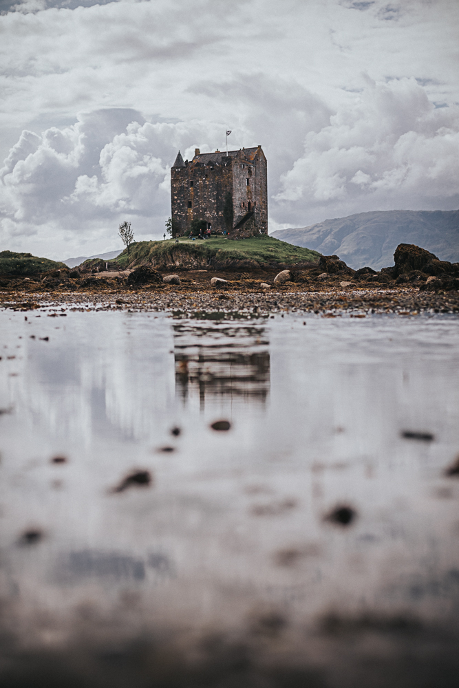 Despues visitamos Stalker Castle, famoso por salir en la película Los caballeros de la mesa Cuadrada. Entramos por la playa de la derecha del castillo, hay un aparcamiento y puedes bajar fácilmente a la playa. Es un escenario realmente increíble.
